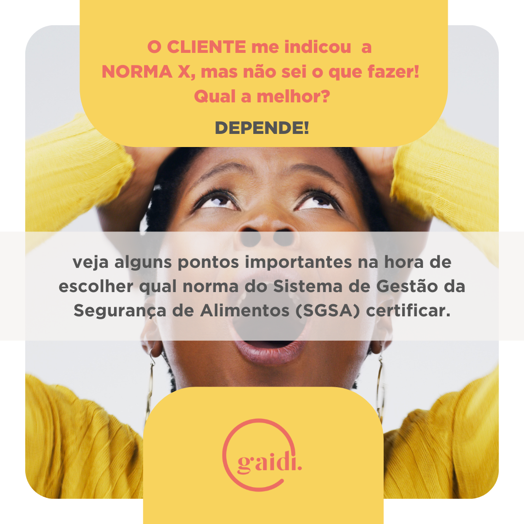 Muitos clientes procuram a Gaidi para conversar sobre demanda de implementação de norma do sistema de gestão de segurança de alimentos, frequentemente advindas de auditorias e exigências de clientes.
